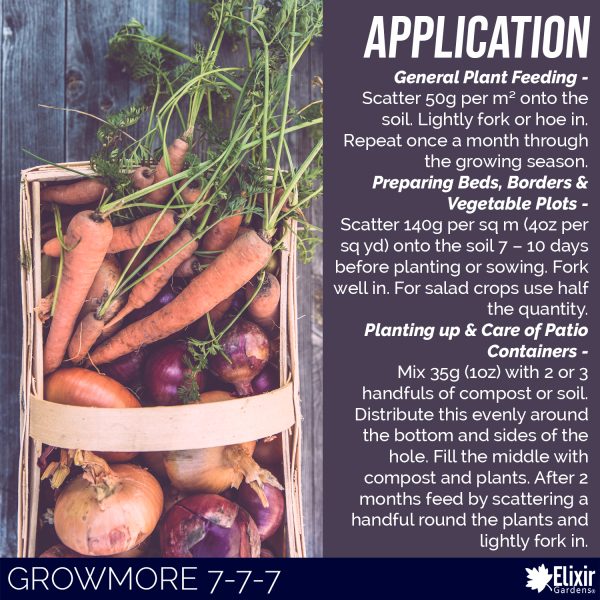 - Scatter 140g per sq m (4oz per sq yd) onto the soil 7 – 10 days before planting or sowing.
