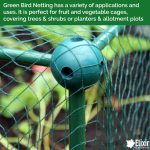 With a great variety of widths and lengths, Green Bird Netting has a variety of applications within horticulture. It makes the perfect covering for small fruit cages, vegetable planters and allotment plots, as well as larger scale agricultural projects. It’s easy to cut to shape and attach to structures making it ideal for trees, orchards and vineyards too.